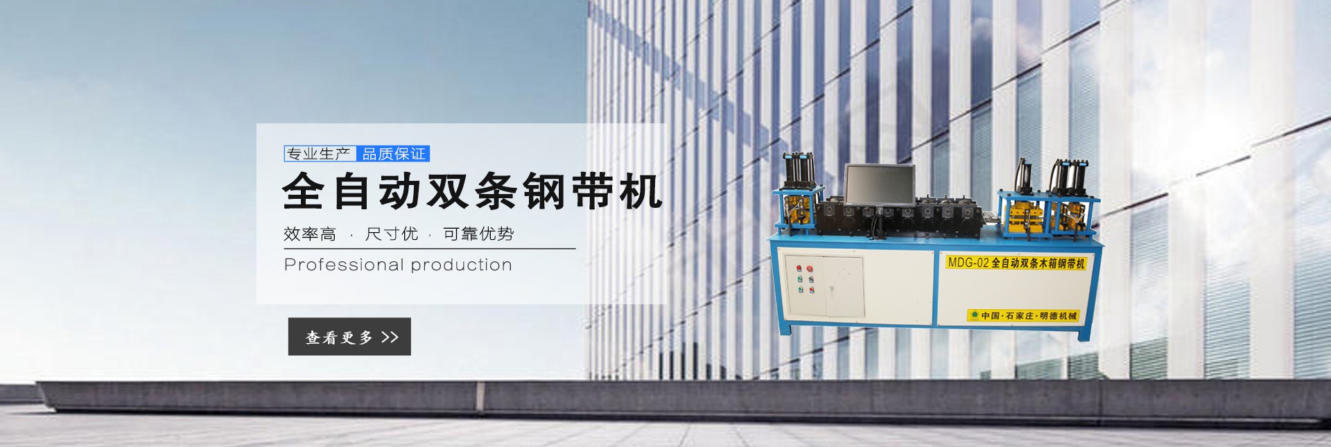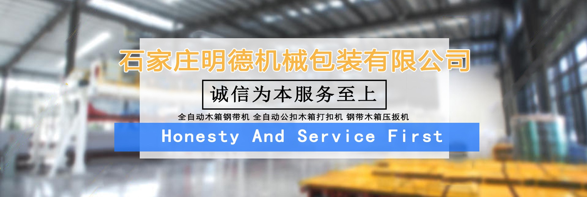 石家莊明德包裝機(jī)械有限公司是國(guó)內(nèi)專業(yè)生產(chǎn)木全自動(dòng)木箱鋼帶機(jī)、半自動(dòng)公母扣木箱打扣機(jī)、全自動(dòng)雙排孔定長(zhǎng)切斷機(jī)、美式托盤(pán)打釘機(jī)械、托盤(pán)刨槽機(jī)、倒角機(jī)、木包裝箱、木托盤(pán)的生產(chǎn)廠家。